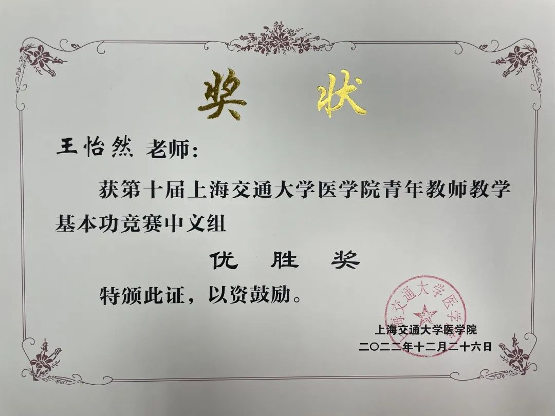 我中心的优秀青年教师们通过本次交大医学院青教赛的历练,汲取了参赛经验,提升了教学水平,开拓了眼界,今后我们将鼓励更多优秀的青年教师们参与各类教学比赛,不断提升教学能力,展教学风采。