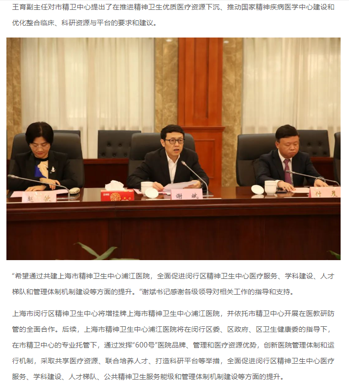 战略机遇叠加,全面提升精神卫生服务体系能级——闵行区人民政府与上海市精神卫生中心合作共建