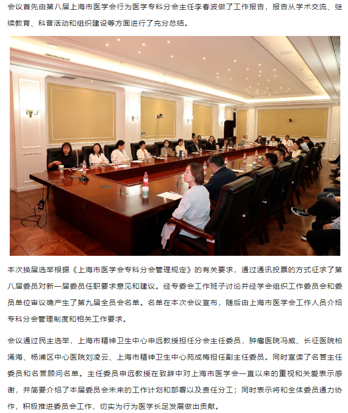 上海市医学会行为医学专科分会委员会换届选举会议顺利召开