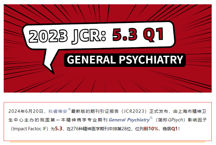 General Psychiatry最新JCR影响因子排名,国际影响力保持稳定!