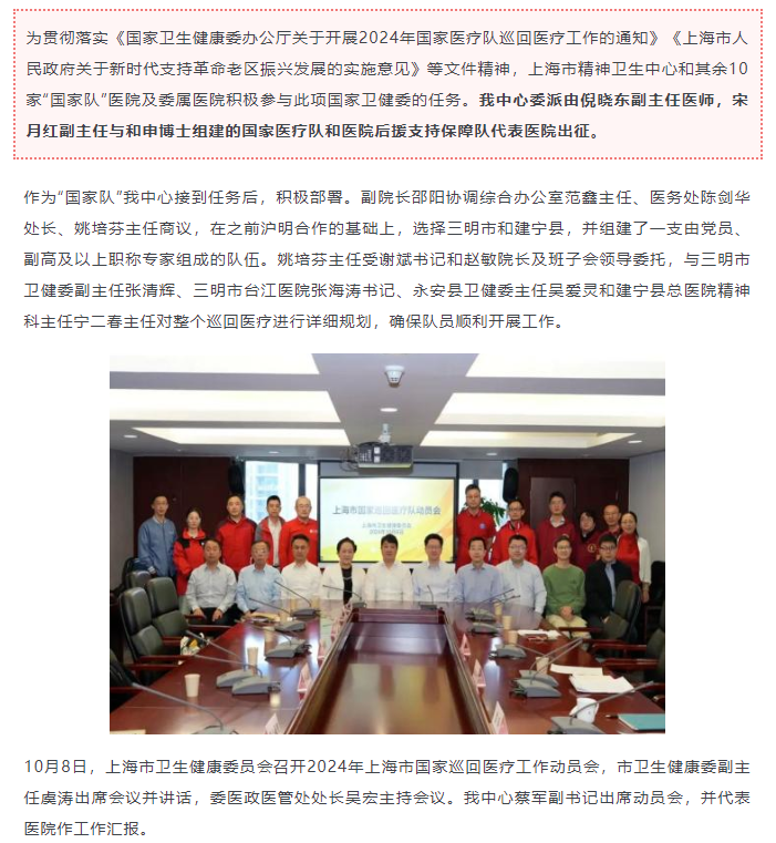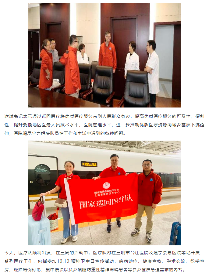 出征!上海市精神卫生中心巡回医疗队赴三明市和建宁县开展医疗帮扶