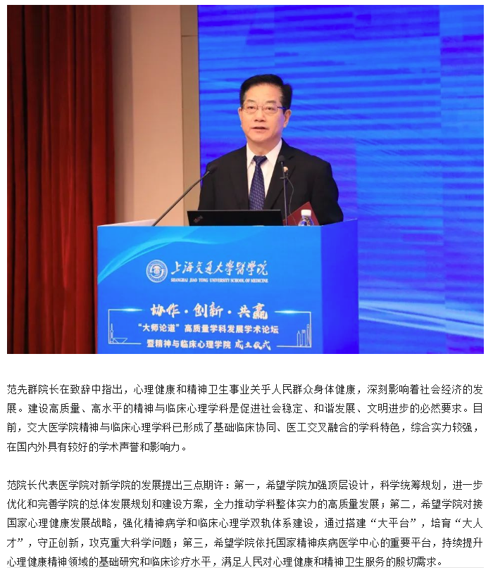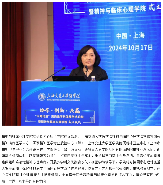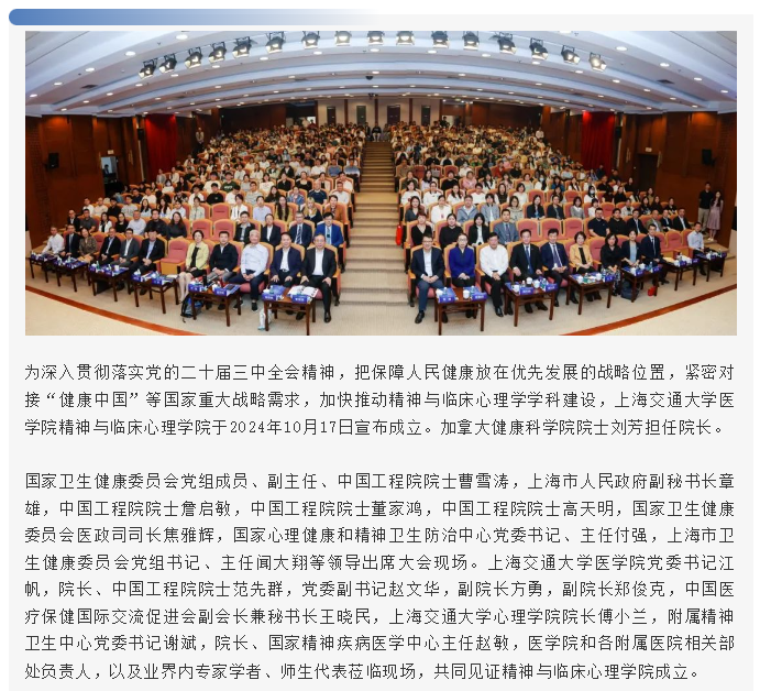 上海交通大学医学院精神与临床心理学院揭牌成立