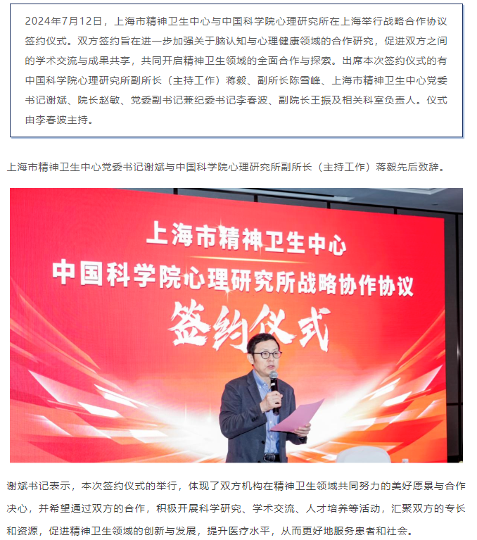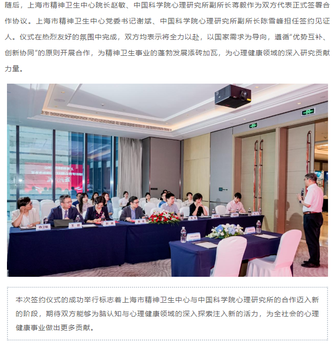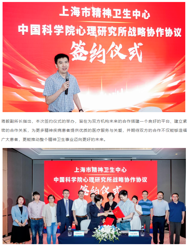 上海市精神卫生中心与中国科学院心理研究所签署战略合作协议,共谱精神卫生事业新篇章