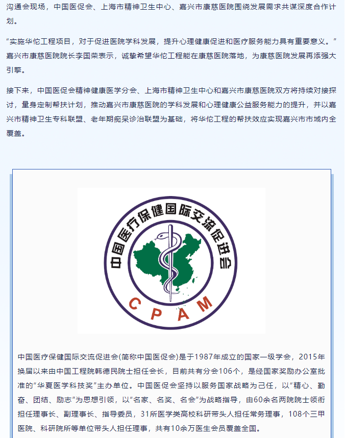 引进学会力量,促协作医院高质量发展——中国医促会精神健康医学分会首家华佗工程学科帮扶沟通会顺利召开