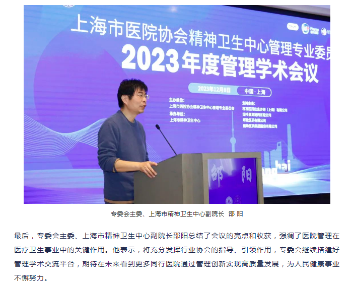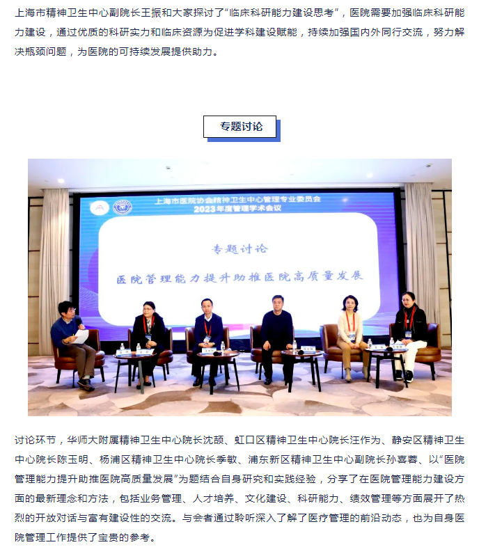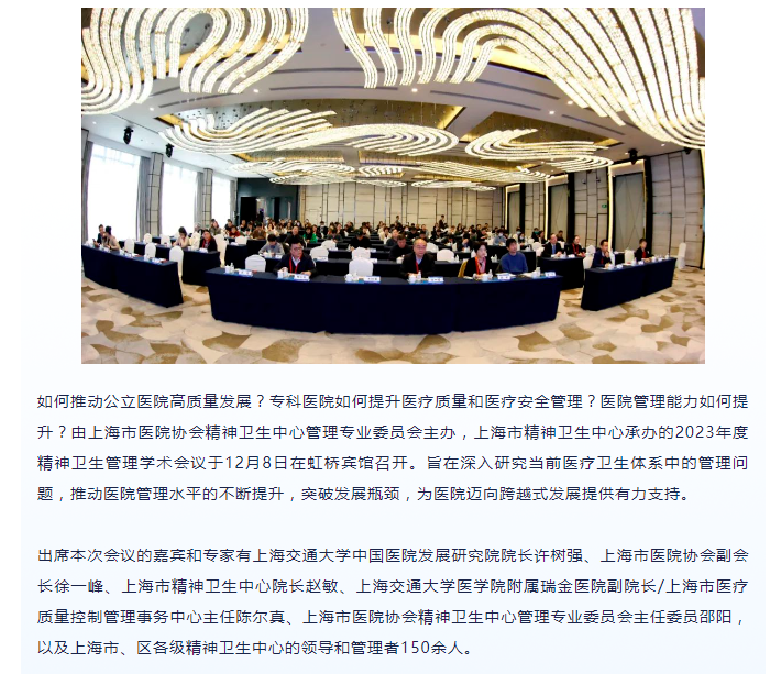 “聚焦医院管理能力建设,助推医院高质量发展”——上海市医院协会精神卫生中心管理专业委员会2023年度学术会议圆满举办