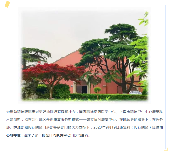 上海市精神卫生中心闵行院区日间康复中心顺利启动