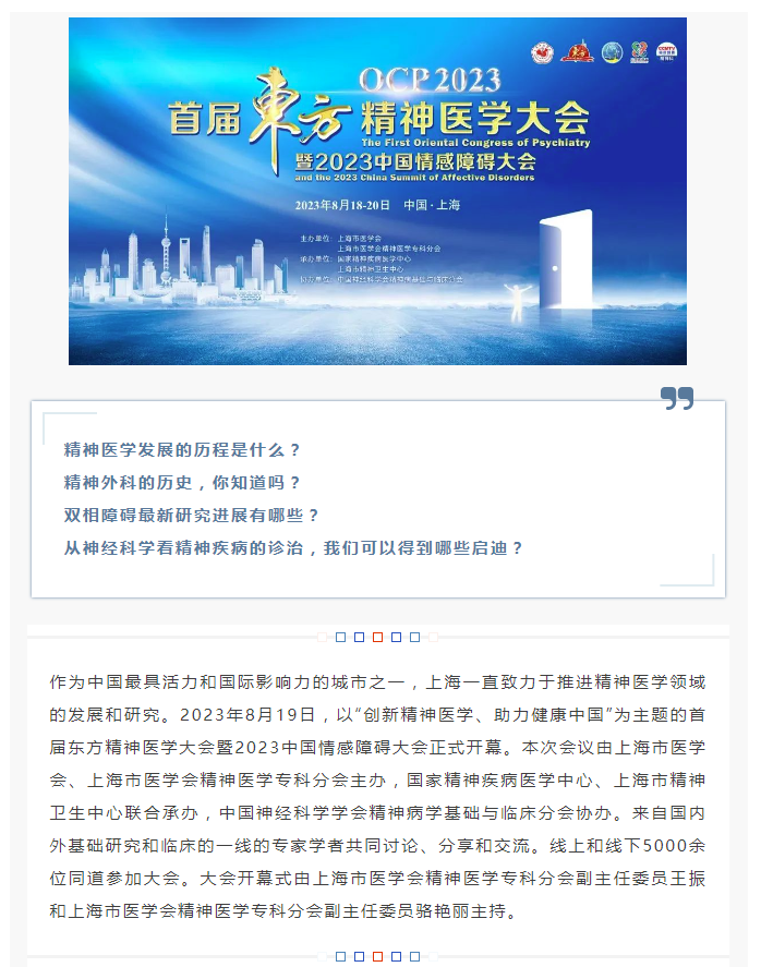 力求形成“精神健康+大健康建设”“精神医学+临床医学融合”“多学科+多部门交叉”的格局——首届东方精神医学大会召开