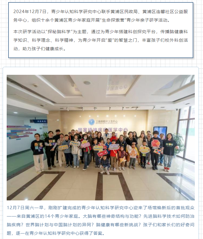 玩转脑科学,一个不能少——青少年认知科学研究中心开展黄浦区青少年亲子研学活动