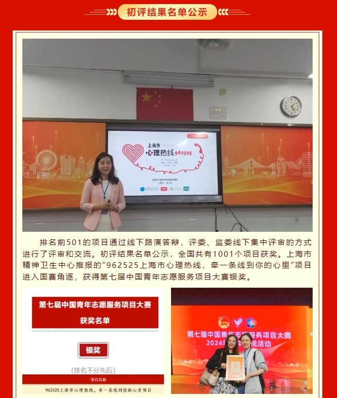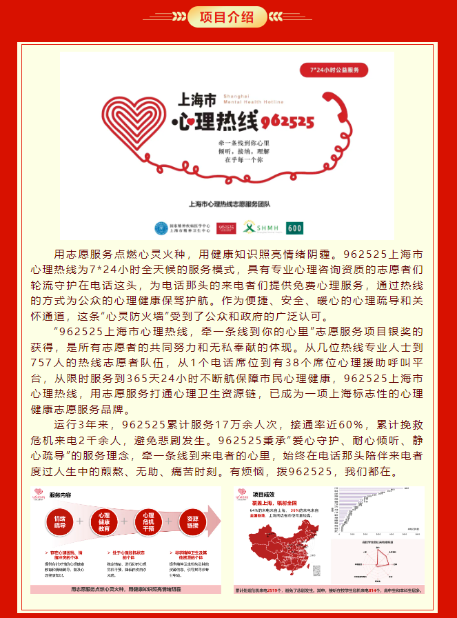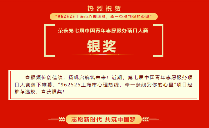 喜报 | “962525上海市心理热线,牵一条线到你的心里”荣获第七届中国青年志愿服务项目大赛银奖