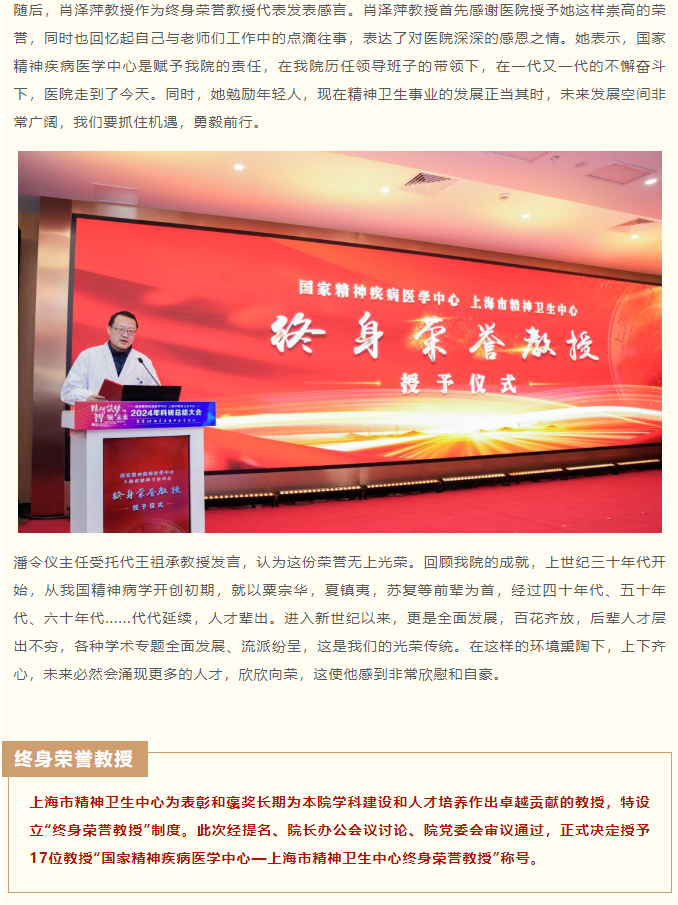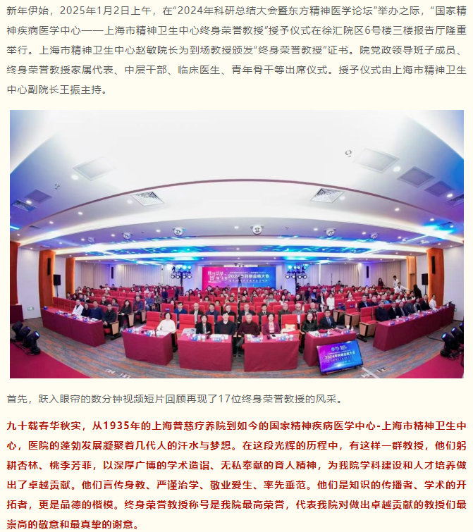 深耕杏林数十载,潜心医术传千秋——国家精神疾病医学中心、上海市精神卫生中心举行第一批“终身荣誉教授”授予仪式