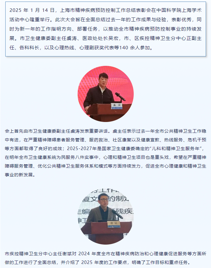共绘蓝图 谱写新篇——2024 年度上海市精神疾病预防控制工作总结表彰会顺利召开