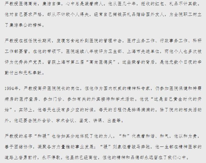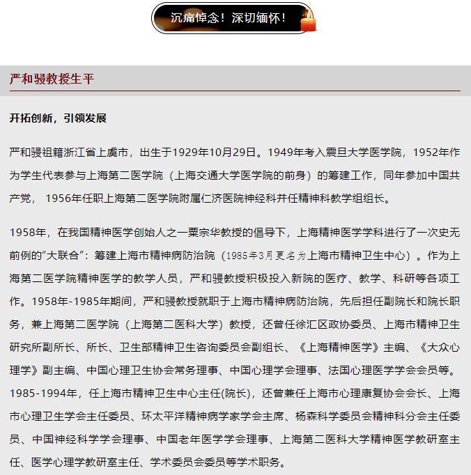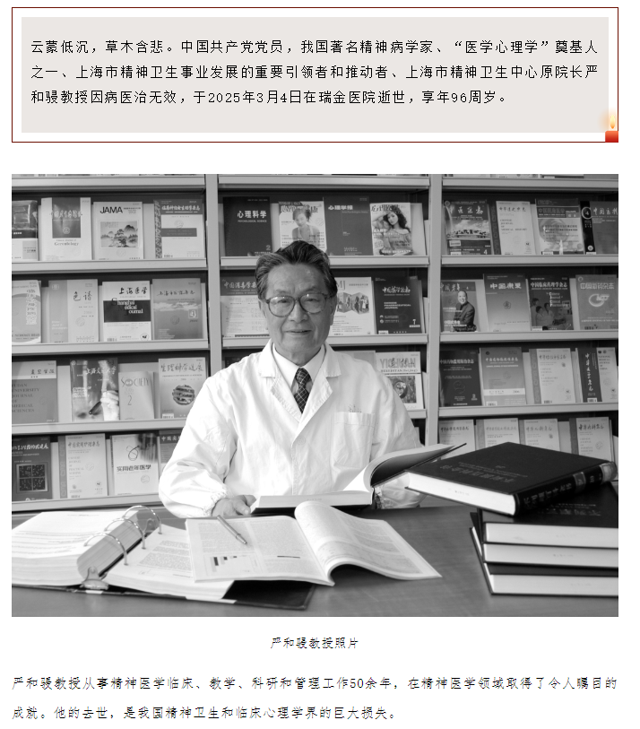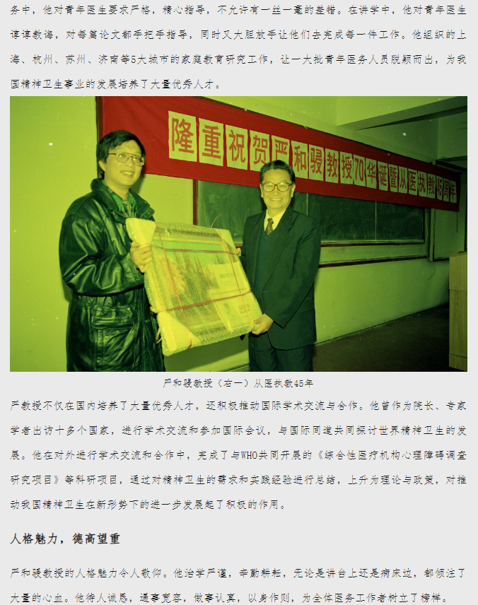 悼 念 | 追忆严和骎教授:精神医学领域的开拓者与引路人