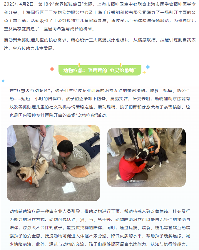国内精神专科医院开启的首场“宠物疗愈”活动联合VR+AI、艺术疗愈 为“星星的孩子”送去温暖
