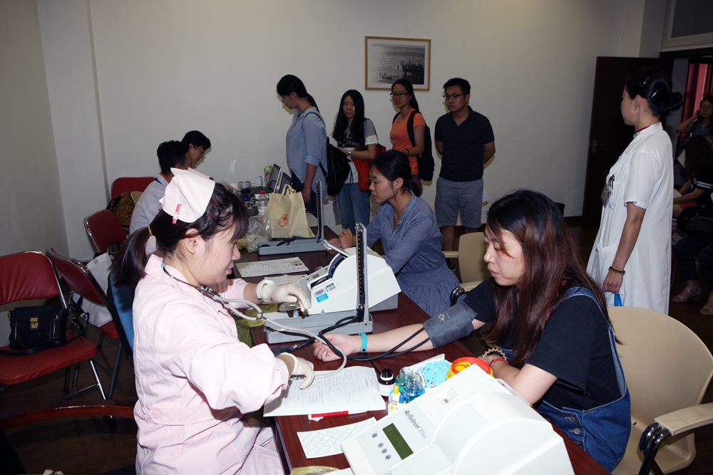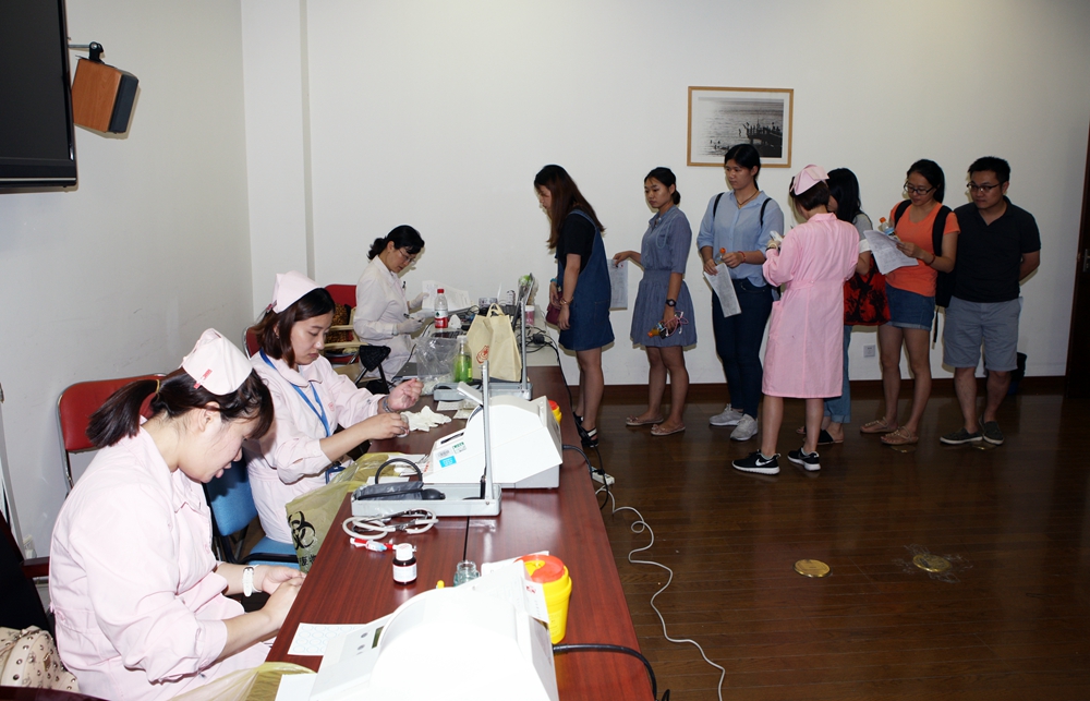 2016年度中心无偿献血工作得到全院职工的大力支持与积极参与。6月30日中心工会、保健室在OA办公平台发布献血通知,至7月10日已有多名职工报名参加献血。考虑到报名献血的职工较多,为了方便献血者,工会、保健室特请上海市血液中心流动献血车驶入本中心,并将教育楼三楼教室按照献血室的要求进行规范布置。工会、人力资源部、保健室等相关部门的工作人员认真做好后勤保障工作,为参加献血的职工准备了饮料、点心,解释献血注意事项、指导填写《献血登记表》等。