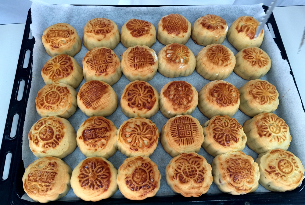 之后月饼送入了大烤箱,大家目不转睛地注视着烤箱内的月饼,随着2次入箱烘焙25分钟的漫长等待,一个个不那么完美但凝聚辛苦劳动的月饼终于出炉啦!大家把亲手制作的月饼装入精美的月饼盒里,贪婪地嗅着从盒子透出的阵阵香味,脸上都绽放出幸福甜美的笑容。