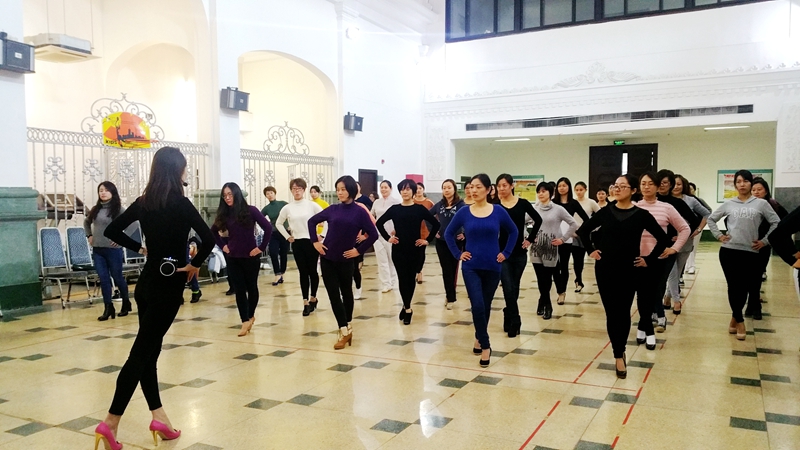 江怡雯老师毕业于上海师范大学音乐学院舞蹈系,4岁开始习舞,专业的成长经历与锤炼使她对零基础学员的训练有独到见解,也能够根据学员的特点调整调动气氛。在今天的活动中,江老师在讲解演示、带领大家以芭蕾基本动作热身后,把重点放在走秀部分,随着音乐缓缓响起,江老师一边纠正学员站立、行走的错误姿势,一边传授走秀秘诀,学员们认真学习,从一开始的不自信,羞涩,缩手缩脚,到越来越坦然,越来越自信从容,集体走秀、小组走秀、双人走秀……,学员们在一次次的练习中体验到身姿形态的变化和心情的放松愉悦,以至于活动结束时,有学员还意犹未尽的说“刚刚有感觉就结束了,时间怎么这么快?”“今天的训练真开心,觉得整个人都有精神了!”