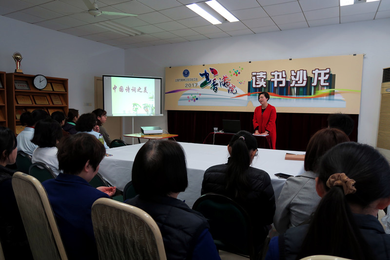 3月30日中午上海市工人文化宫“公益乐学”张庆老师将“古诗词之美”带到了我中心,志趣相投的诗词爱好者们聚会一堂,欣赏古诗,吟诵美文,分享心得,这也是我中心“书香满院·读书沙龙”的首场活动。