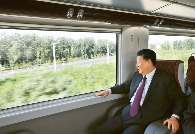 2019年9月25日上午,北京大兴国际机场投运仪式在北京举行。中共中央总书记、国家主席、中央军委主席习近平出席仪式,宣布机场正式投运并巡览航站楼。这是习近平乘坐轨道列车前往北京大兴国际机场。 新华社记者 谢环驰/摄