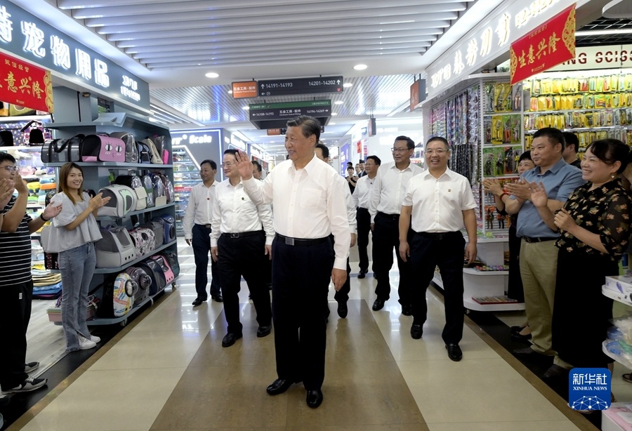 9月20日至21日,中共中央总书记、国家主席、中央军委主席习近平在浙江考察。这是20日上午,习近平在义乌国际商贸城考察时,同商户、小企业主代表亲切交流。新华社记者 李学仁 摄