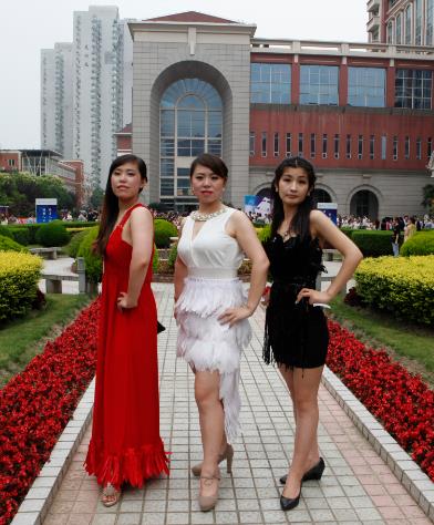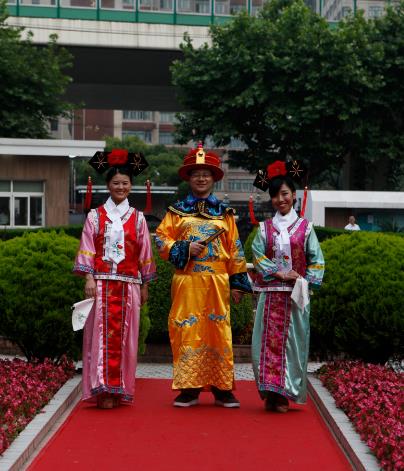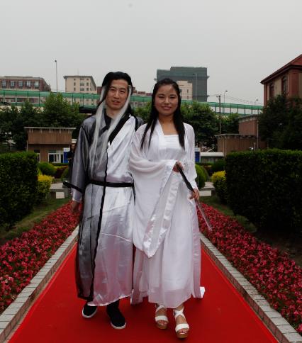 在我中心领导和科研科老师的大力支持下,我中心2014届毕业研究生为本次活动做了积极的准备,包括走秀创意的探索和确定、服装的制备及辛苦的排练等。功夫不负有心人,同学们的积极准备为本次红毯秀带来了一抹亮丽的色彩。我中心研究生别具匠心、创意无限的红毯秀让众人大饱眼福,比如亲子秀的温暖俏皮、加勒比海盗的亦正亦邪、民国学生范的怀旧励志、神雕侠侣的旷世情缘、帝王嫔妃的华丽高贵、“小时代”的时尚美艳等,这些对经典影视角色的模仿,引得掌声连连,尖叫声不断。红毯秀活动更是在我们萌态十足的亲子舞蹈中达到高潮。我中心的毕业生创意秀,引得众围观者争相合影,照片在微博、微信圈被纷纷转载。这次创意秀不仅给演出者自己带来无限的快乐,也为母校的告别仪式带来独一无二的记忆。