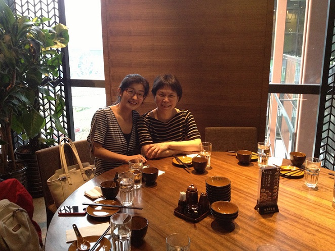 趁着菜还没上,赶紧跟老师单独合照,后面的师妹们还排队呢!PS:我们的衣服很搭,有木有!