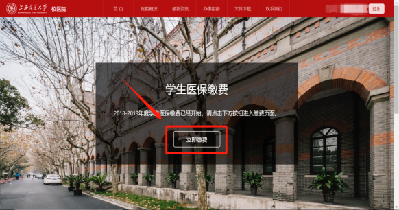 学生医保缴费、学生医疗报销等页面为滚动页面,待滚动到学生医保缴费页面,请点击首页的“立即缴费”。