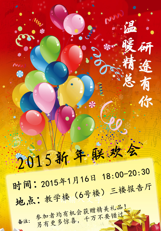 2015年1月16日晚6:00,我中心2014—2015年度“温暖精中,研途有你”新年晚会在6号楼三楼报告厅隆重拉开帷幕。市卫计委肖泽萍副主任、赵敏副书记、李春波副院长、工会主席王海云、宣传科科长金友兰、科教部王振、杨卫敏、涂轶群老师、团委蒋春燕老师以及本中心的导师和研究生同学到场观看并参与了活动。