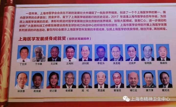 今天下午召开的上海市医学会100周年纪念大会上,颁发了“上海医学发展系列奖项”,表彰奖励50位为医学发展做出突出贡献的医界精英。20位专家荣获“上海医学发展终身成就奖”,30位专家荣获“上海医学发展杰出贡献奖”。