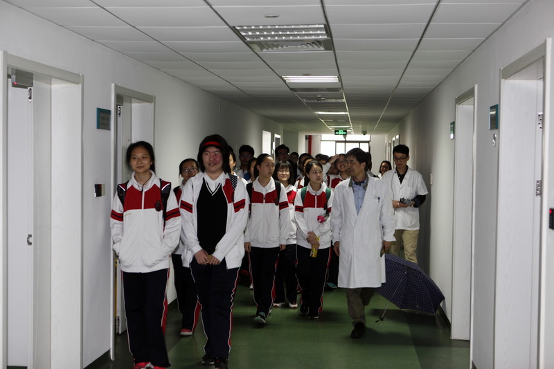 下午一点半,同学们来到了闵行院区,一下车就被院区的如画风景所吸引,纷纷拿起手中的相机,驻足留影。随着讲解员的脚步,同学们来到了康复中心,看到墙上病人的书法和绘画作品,表示由衷赞叹,也对患者的多种康复方法竖起大拇指。随后一行人来到上海市重型精神病重点实验室。实验室里的工作人员都在忙碌地进行研究,同学们目不转睛看着工作人员做动物实验,高、精、尖的实验设备也让同学们开了眼界。最后,南洋模范中学的师生和中心的志愿者讲解员在重点实验室大楼门前合影,为本次活动划上完美句号。