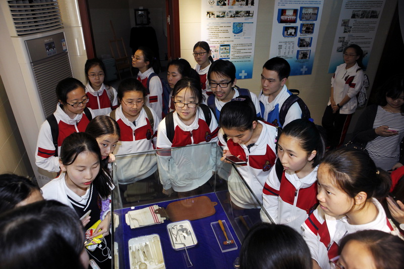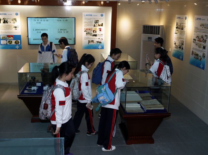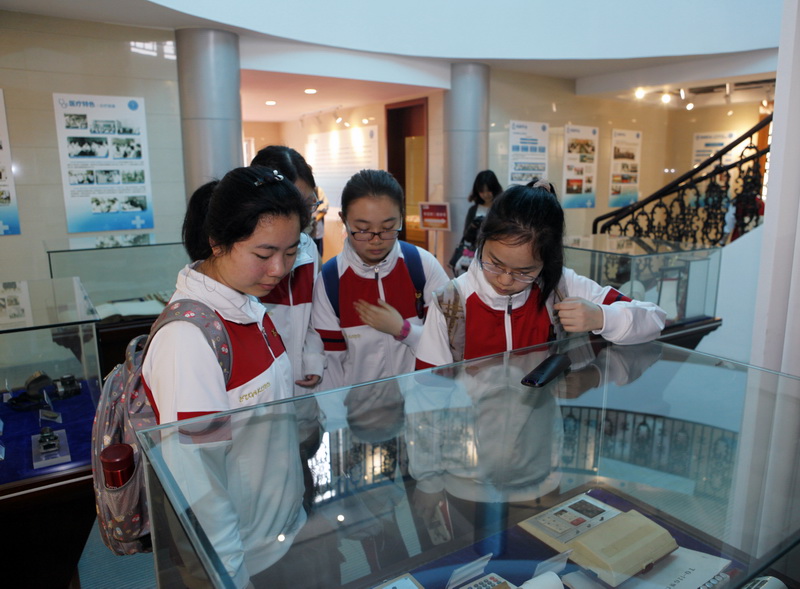 按照事先安排,在讲解员的带领下,师生们分成2个小队跟随中心志愿者讲解员前往院史馆、儿少病房、心身病房、精神科门诊、心理咨询与治疗门诊进行参观。在讲解员的解说下,同学们认真地观摩了作为上海市卫生系统职业道德教育基地的院史陈列馆中的实物、展览与展板介绍,对中心的历史、传承、发展有了更加深入的了解。