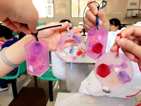 冷却完成之后,一个个充满创意的香皂从模具中脱壳而出,串上五颜六色的彩绳,包装好精美的礼盒,一份份DIY香皂显得格外高大上。美好甜美的午间在欢声笑语中度过。