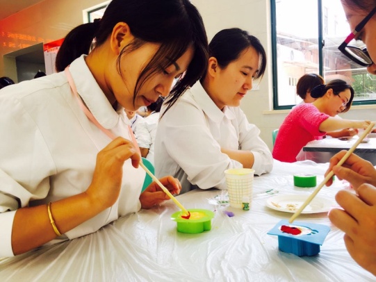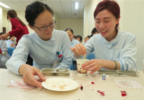 踏入活动现场,桌子上摆放的各种模具和制作道具已暗暗勾起护士姐妹们的好奇心,配合精油散发的芬芳气味,愉悦着大家的心情。