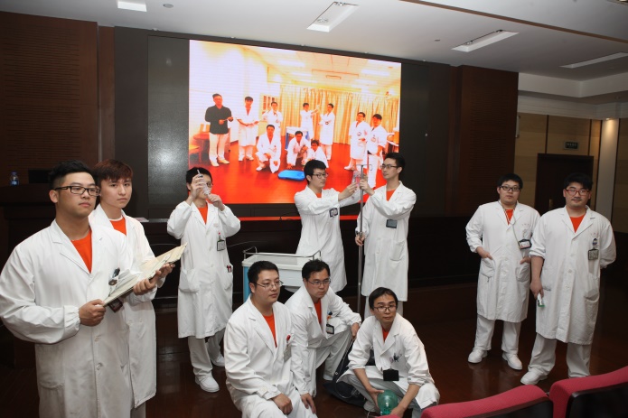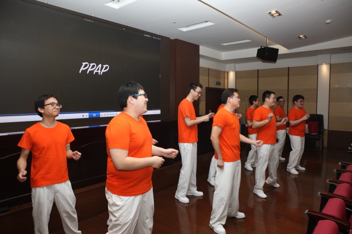 主题三:男护士的节目表演。徐汇院区10位男护士组成了阳光先锋队,他们先是以走秀形式展示了男护士在工作岗位的点点滴滴,然后伴着《PPAP》的舞曲跳起了幽默风趣的舞蹈,展现了男护士的别样魅力,吸引了在场所有人的眼球。