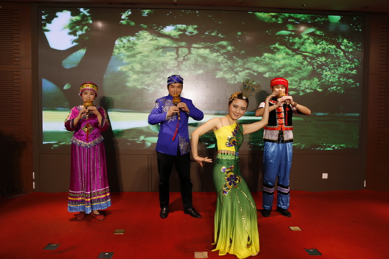 职工们自导自演的各类精彩节目一一亮相。歌曲大串烧率先登场,葫芦丝舞蹈《月光下的凤尾竹》令人耳目一新,那民族乐器吹奏出的声音是那么令人魂牵梦萦。值得一提的是今年节目中有个京剧联唱,工会主席王海云亲自登场,几位职工唱念做表演颇有几份功力,很显然是花了很大功夫的。精中F4组合表演的诗朗诵《我在精中》把朗诵和年中进行的全院各科室职工拍摄的造型各异的照片融合到背景中非常有特色,让现场职工也在节目中看到了自己,其创意非常接地气!压轴舞蹈《飞天》的姑娘们婀娜多姿,仿佛把大家带入了敦煌艺术的神秘之中。