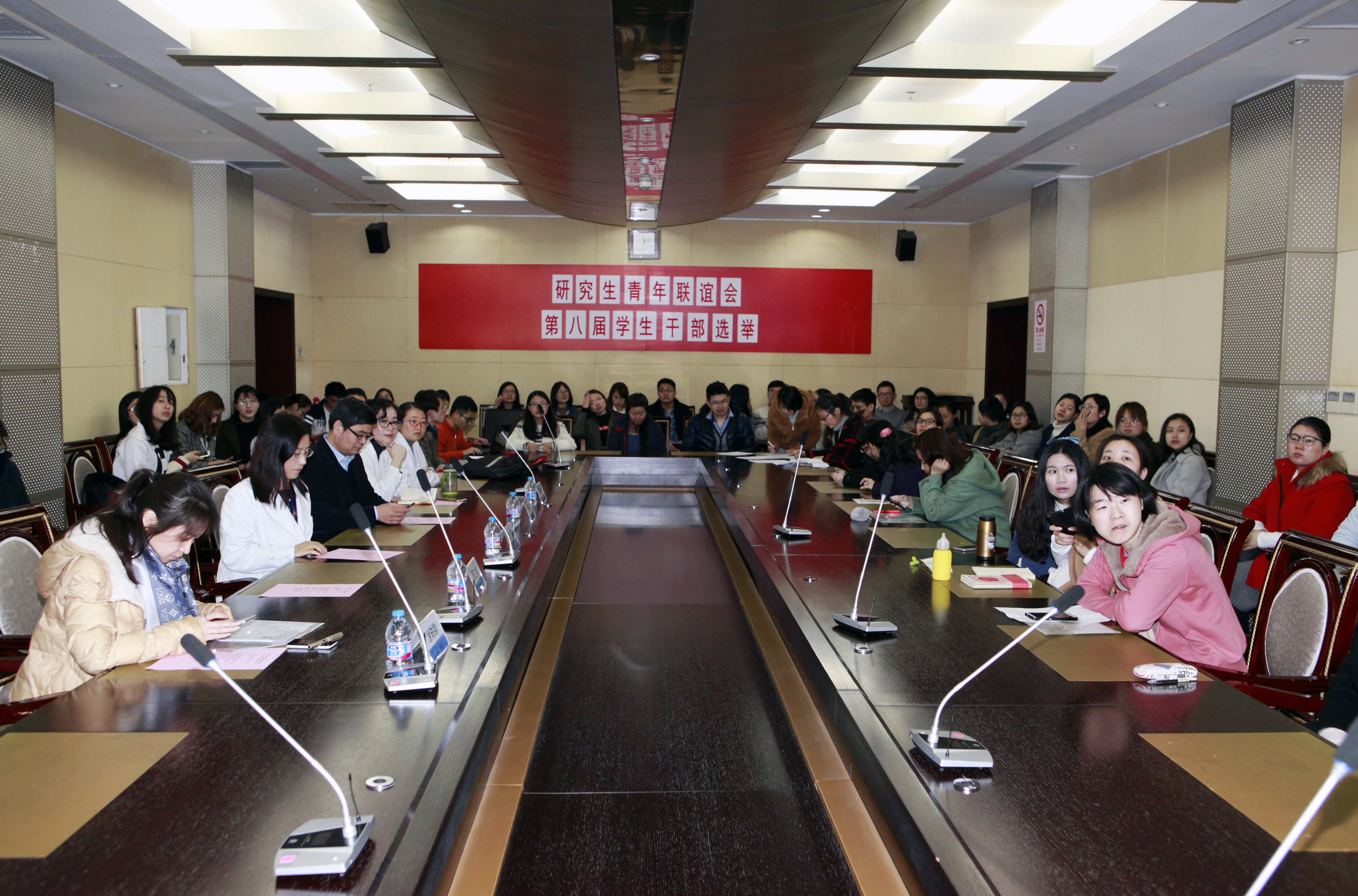 3月23日中午12时,我中心研究生青年联谊会(下列简称“研联会”)第八届换届大会在二号楼五楼第一会议室顺利召开,中心党委副书记赵敏,副院长李春波,学生党支部书记杨卫敏,宣传科副科长乔颖及科研科副科长涂轶群出席并对换届改选工作进行现场指导。大会由周儒白同学主持。