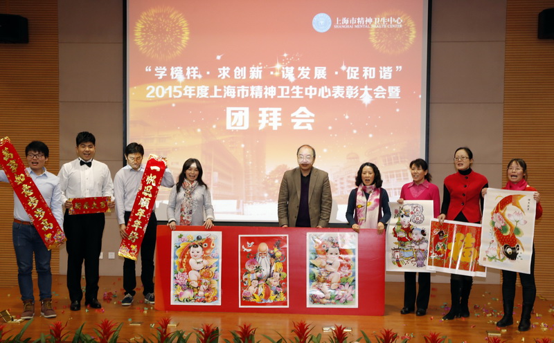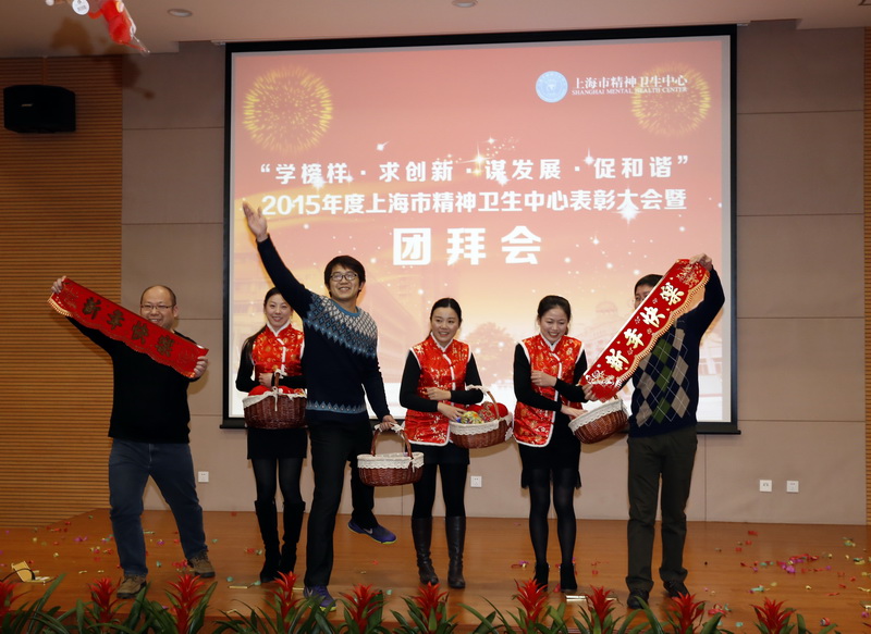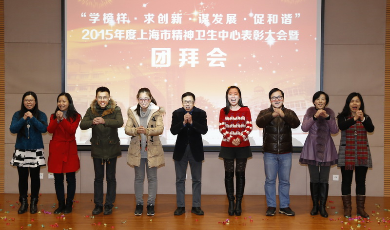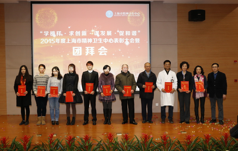 “春临大地百花艳,节至人间万象新,羊年献彩立新功,猴年扬威兴骏业”,在四位主持人热情洋溢的开场白中,“学榜样,求创新,谋发展,促和谐”2015 年度上海市精神卫生中心先进表彰大会暨新春团拜会于2016 年1 月27 日在闵行院区精神疾病防治研究中心一楼报告厅隆重举行。中心党政领导、离退休干部、受表彰职工及部分医护人员等三百余人出席了表彰大会。