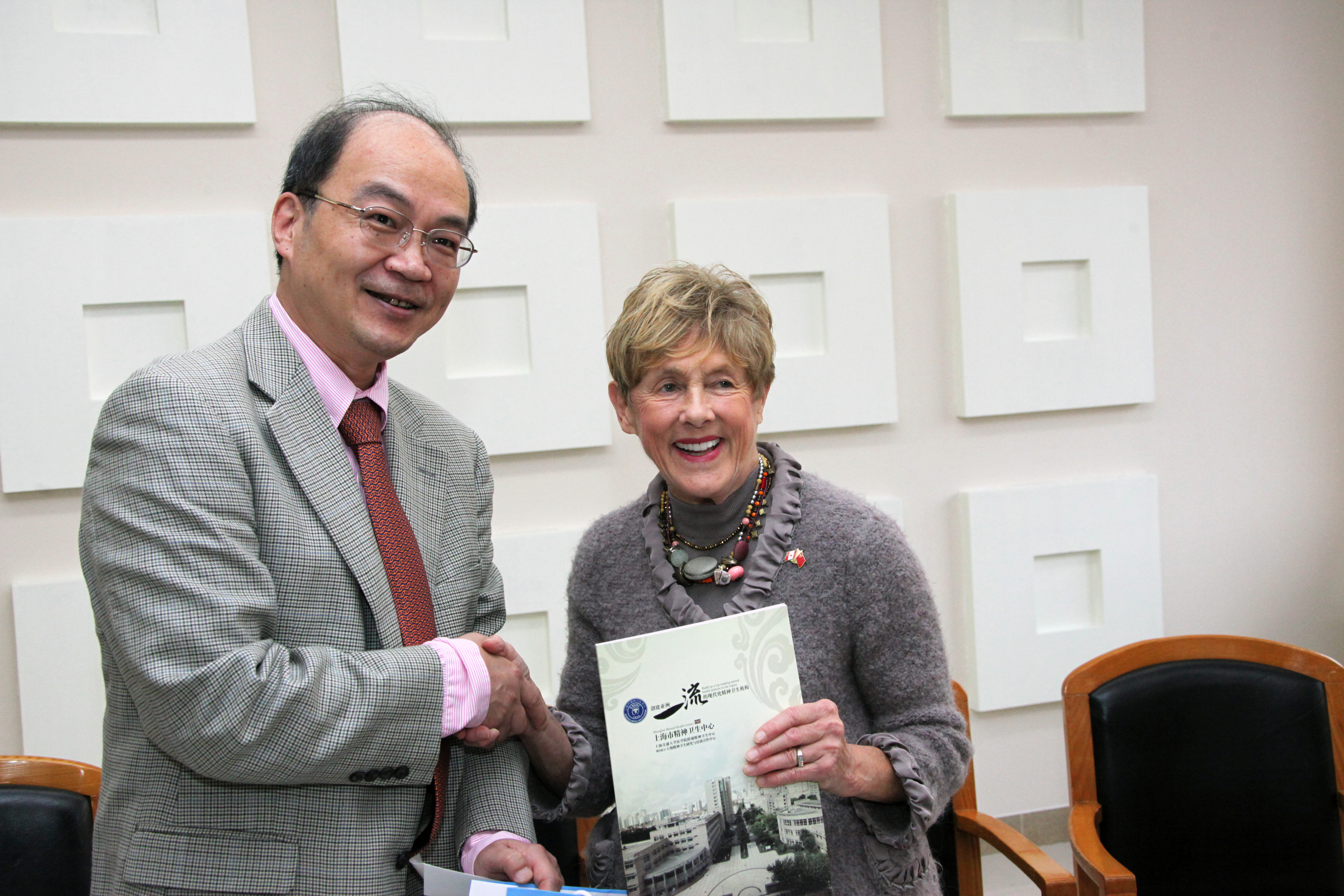徐一峰院长向总督夫人介绍了中国和上海精神卫生现状以及目前我中心的医疗规模和医疗特色,并陪同参观了儿少咨询门诊及病房。总督夫人饶有兴趣地观摩了音乐治疗、文体治疗,了解了儿童团体治疗、家长培训以及沙盘、绘画、生物反馈治疗等,并与小朋友互动交流,还将特意从加拿大带来的玩具和书籍赠送给小朋友。夫人的热情和慷慨让小朋友们倍感亲切。