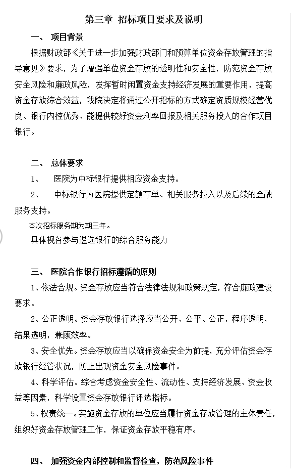 医院合作银行招标项目招标文件