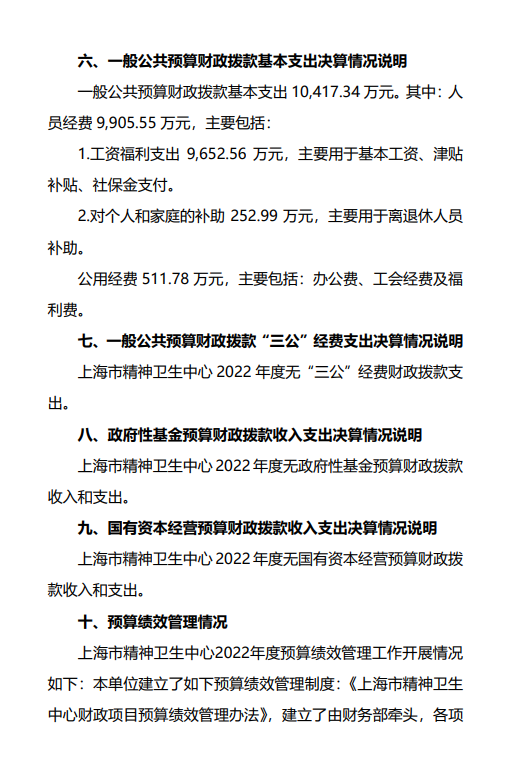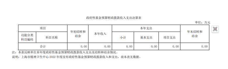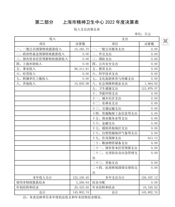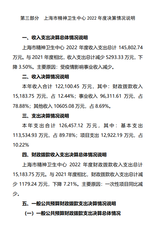 上海市精神卫生中心2022年度决算