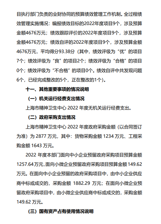 上海市精神卫生中心2022年度国有资产 管理情况