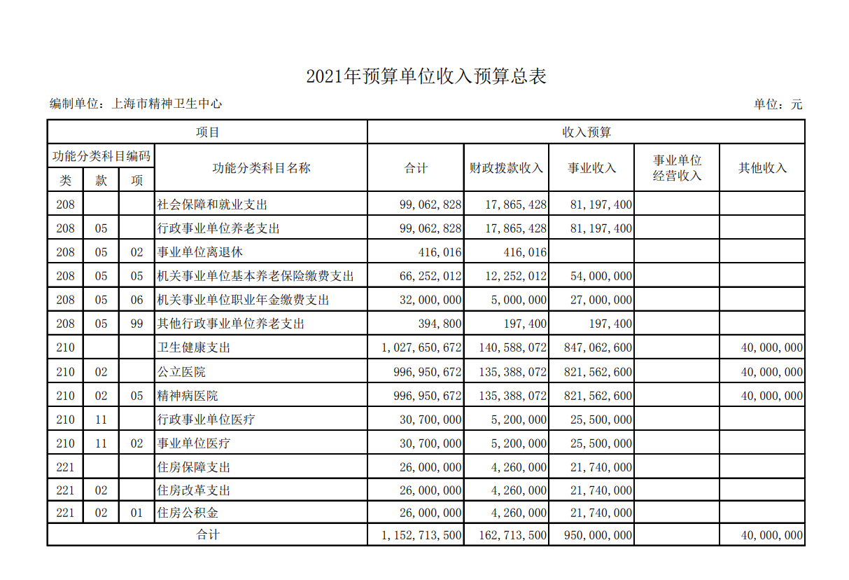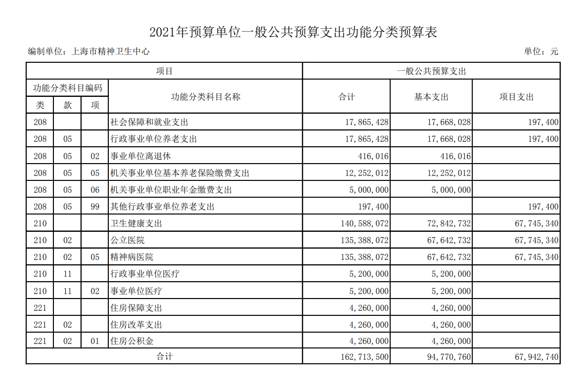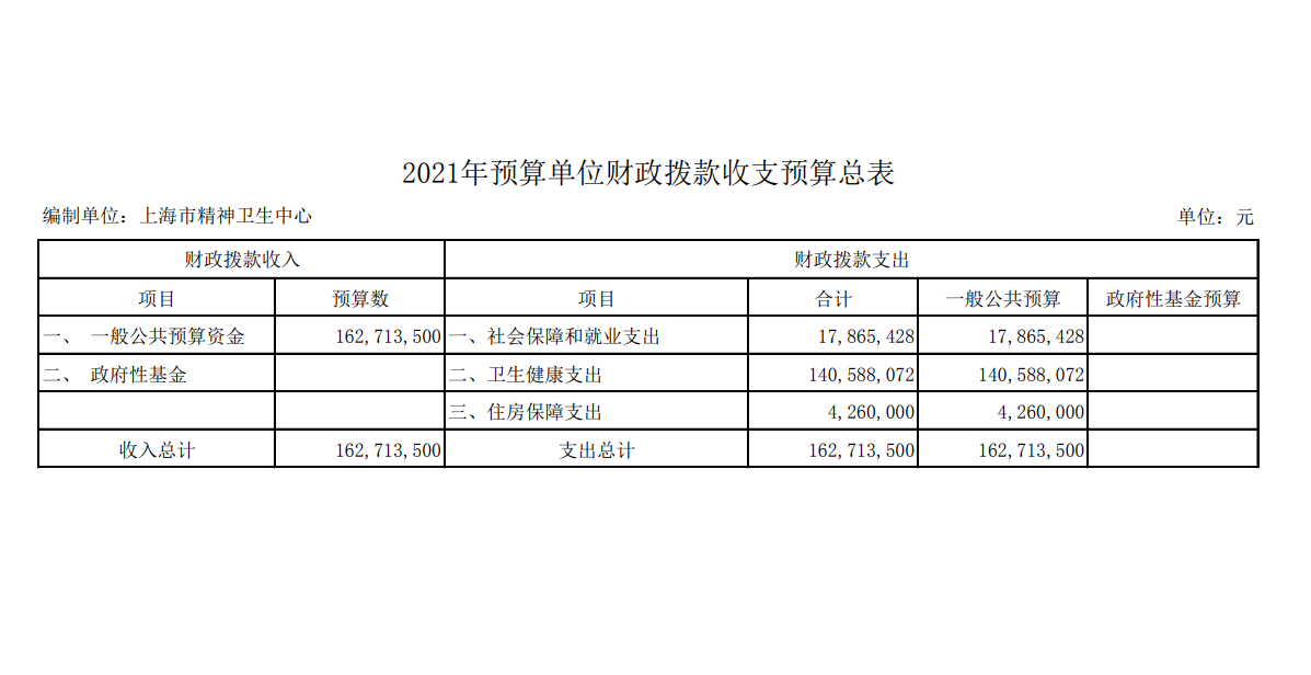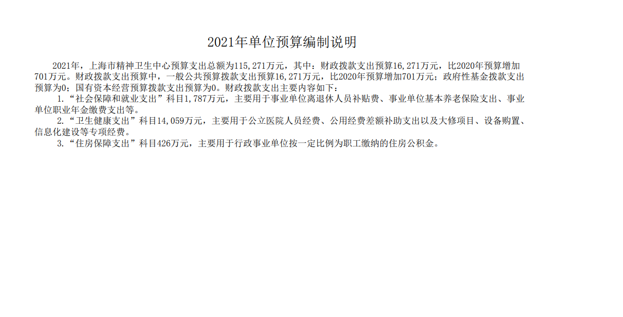 上海市精神卫生中心2017年度单位预算