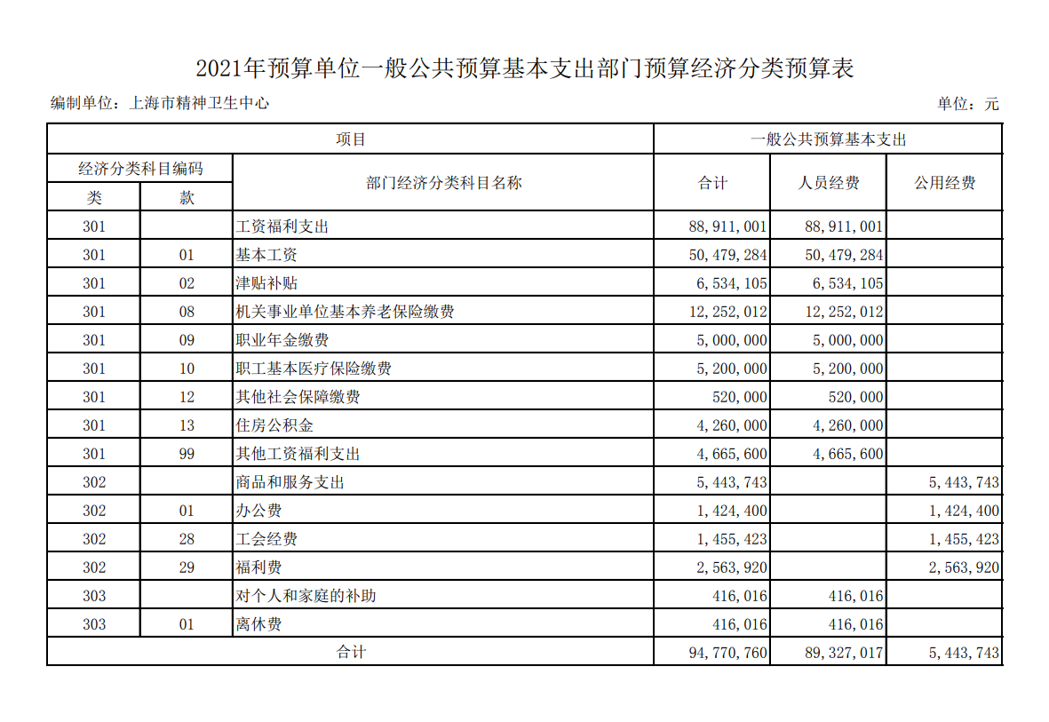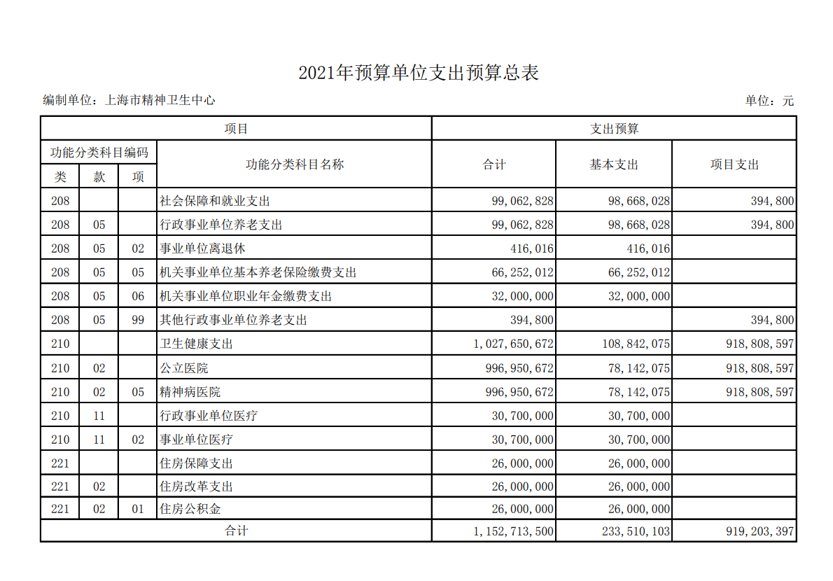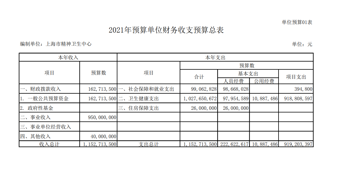 上海市精神卫生中心2017年度单位预算