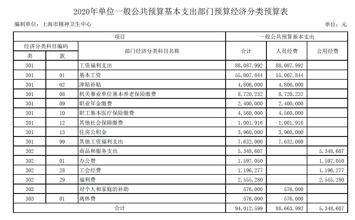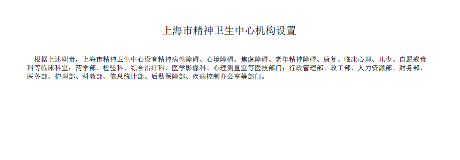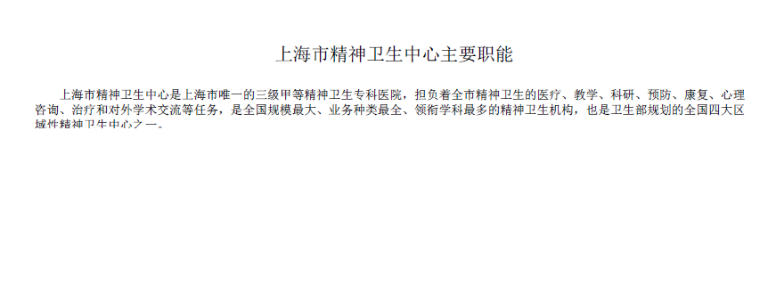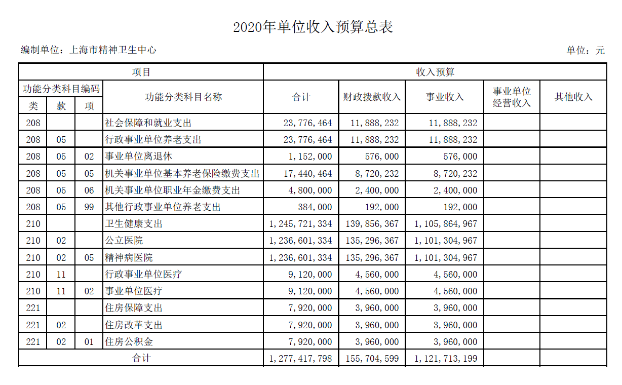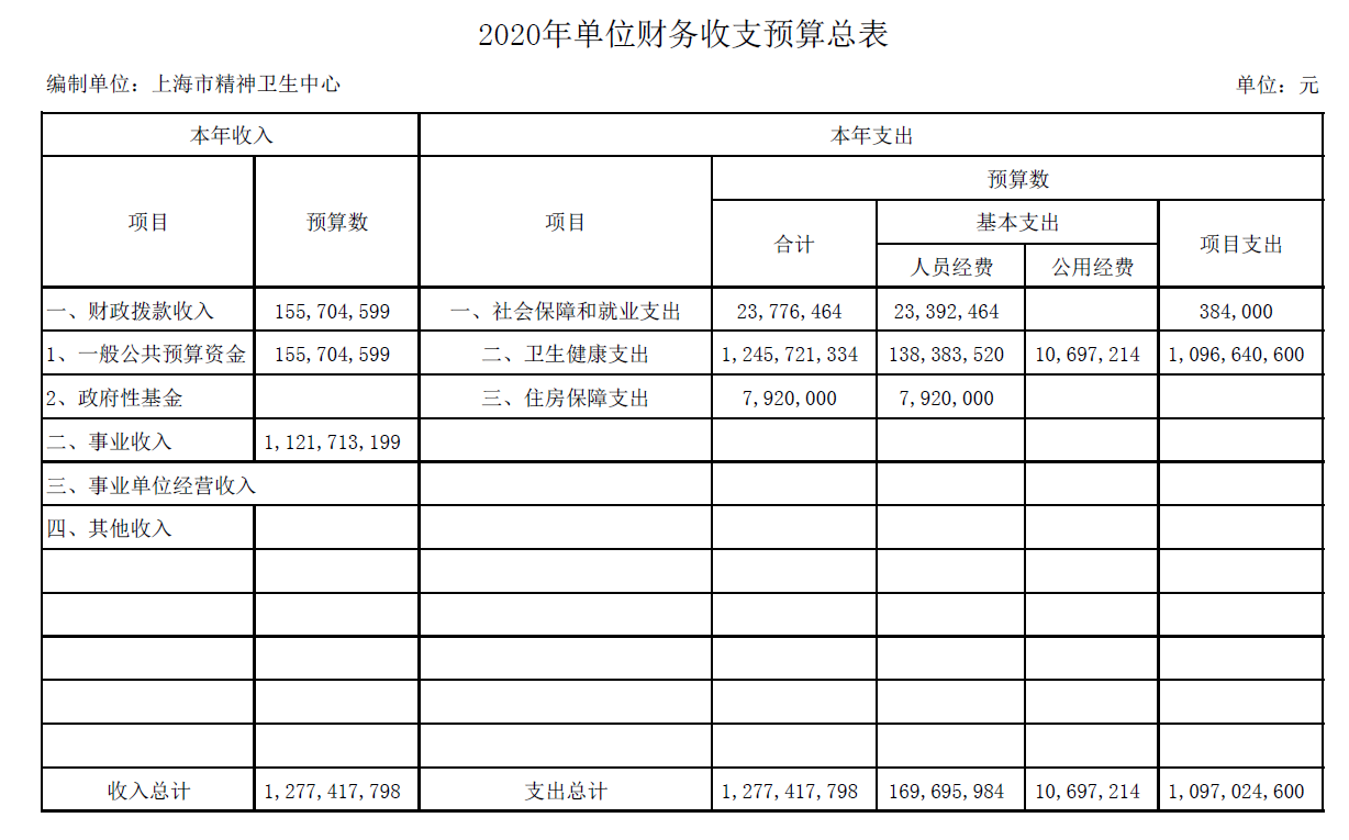 上海市精神卫生中心2020年度财政支出项目绩效目标