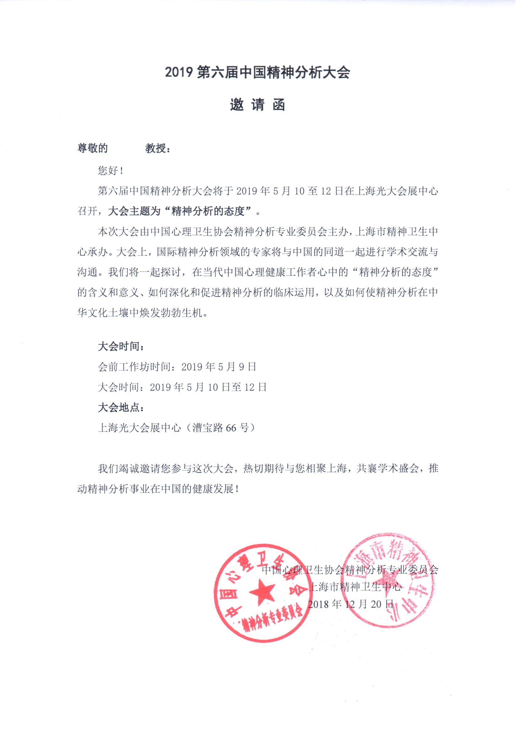 2019第六届中国精神分析大会邀请函
