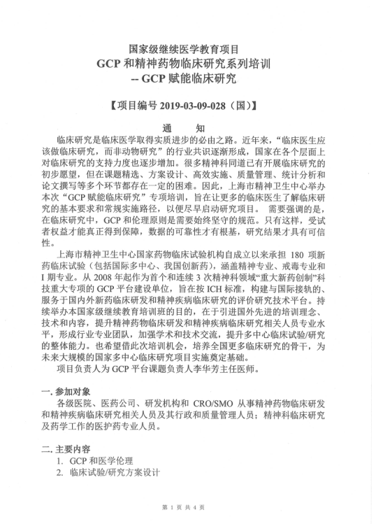国家级继续医学教育项目GCP和精神药物临床研究系列培训——GCP赋能临床研究