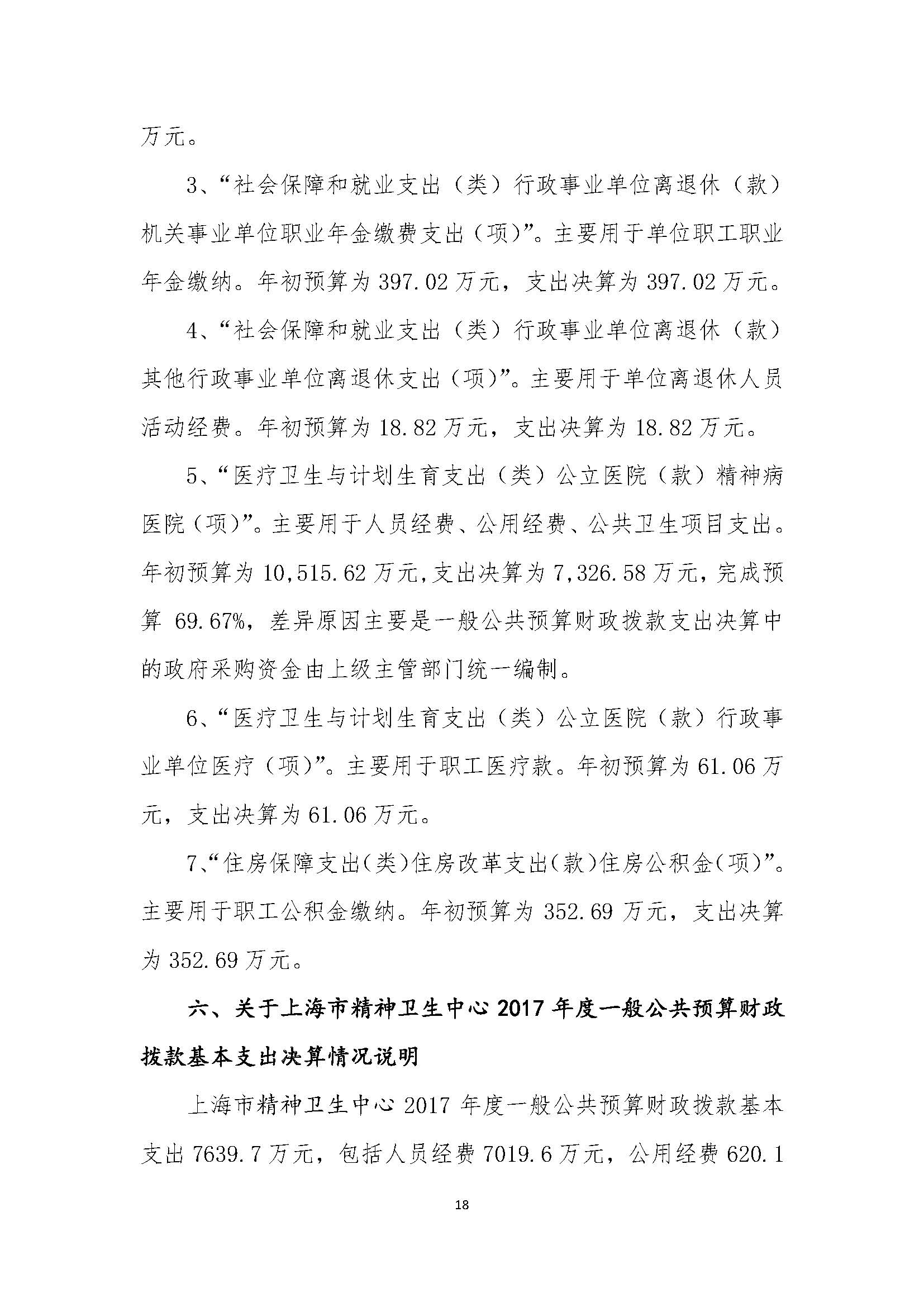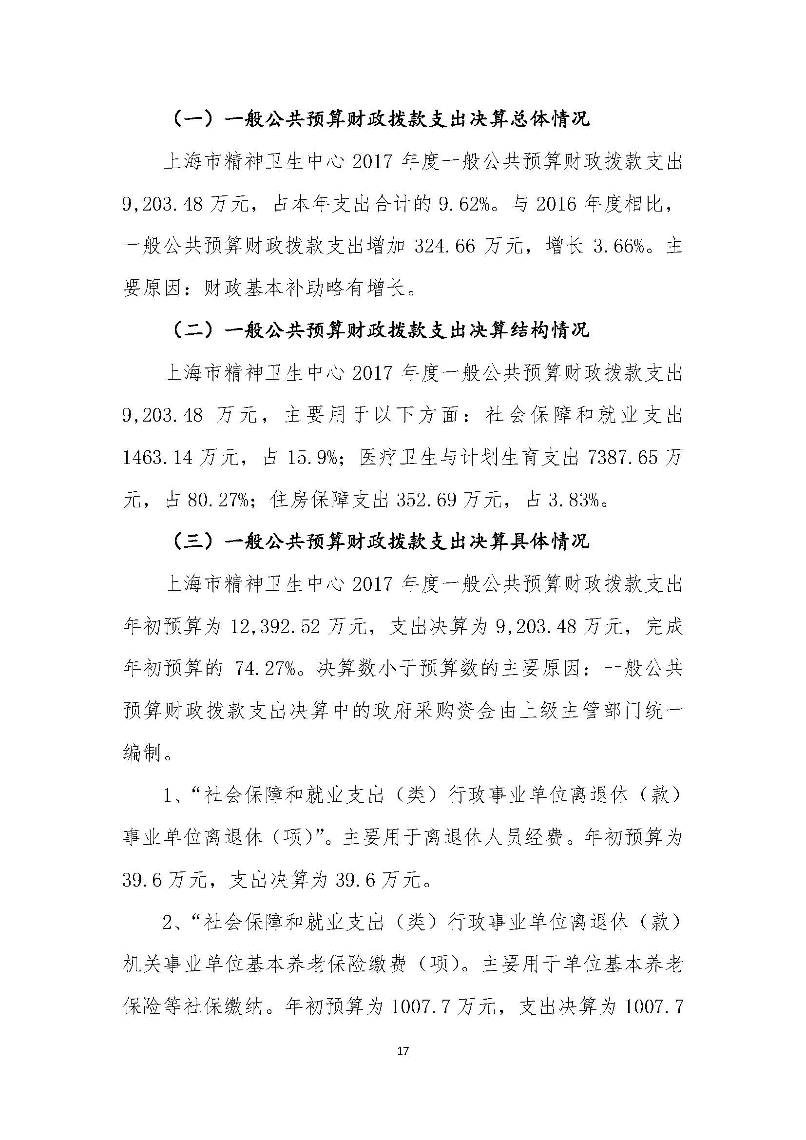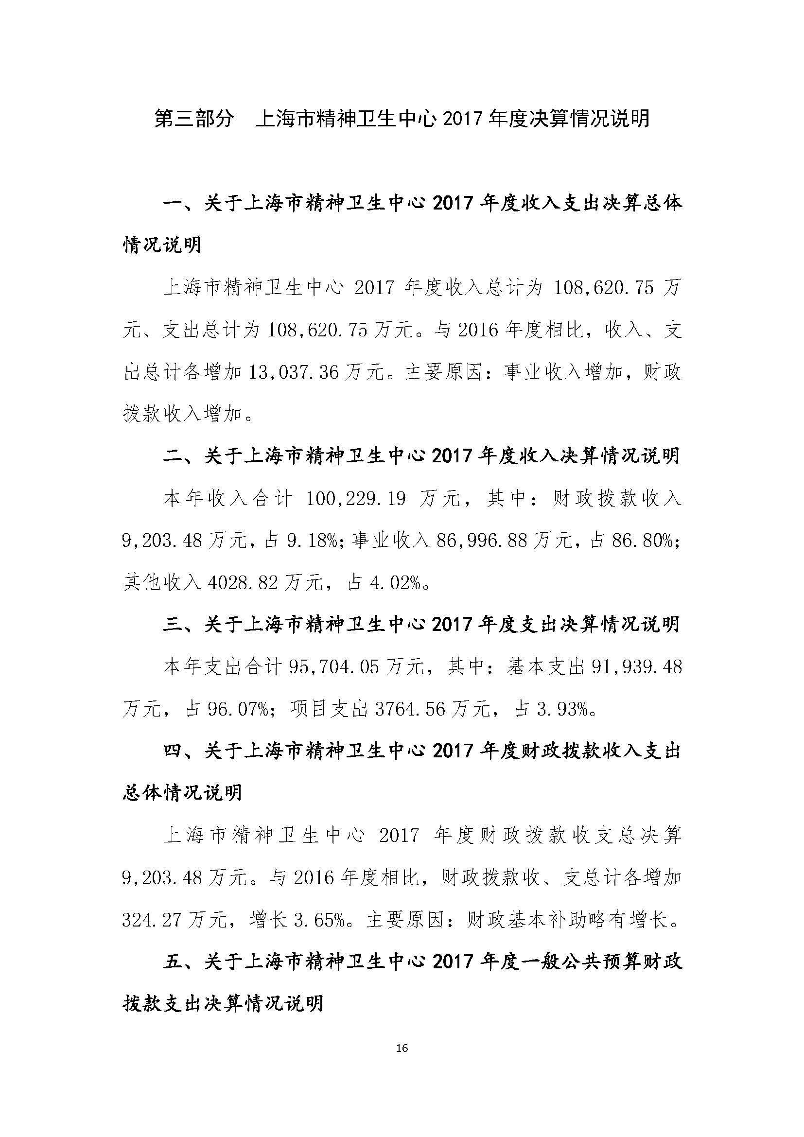 上海市精神卫生中心 2017年度决算