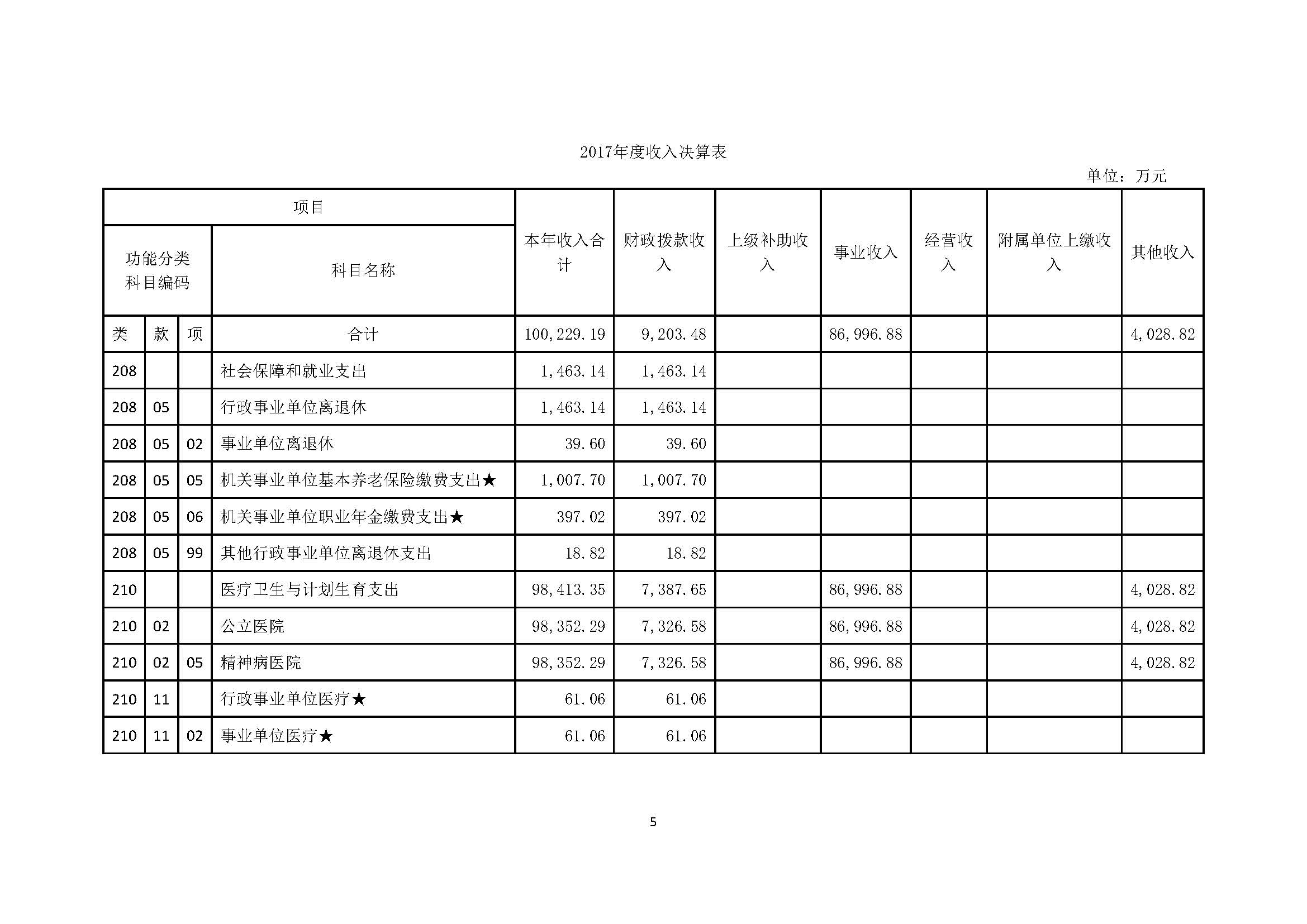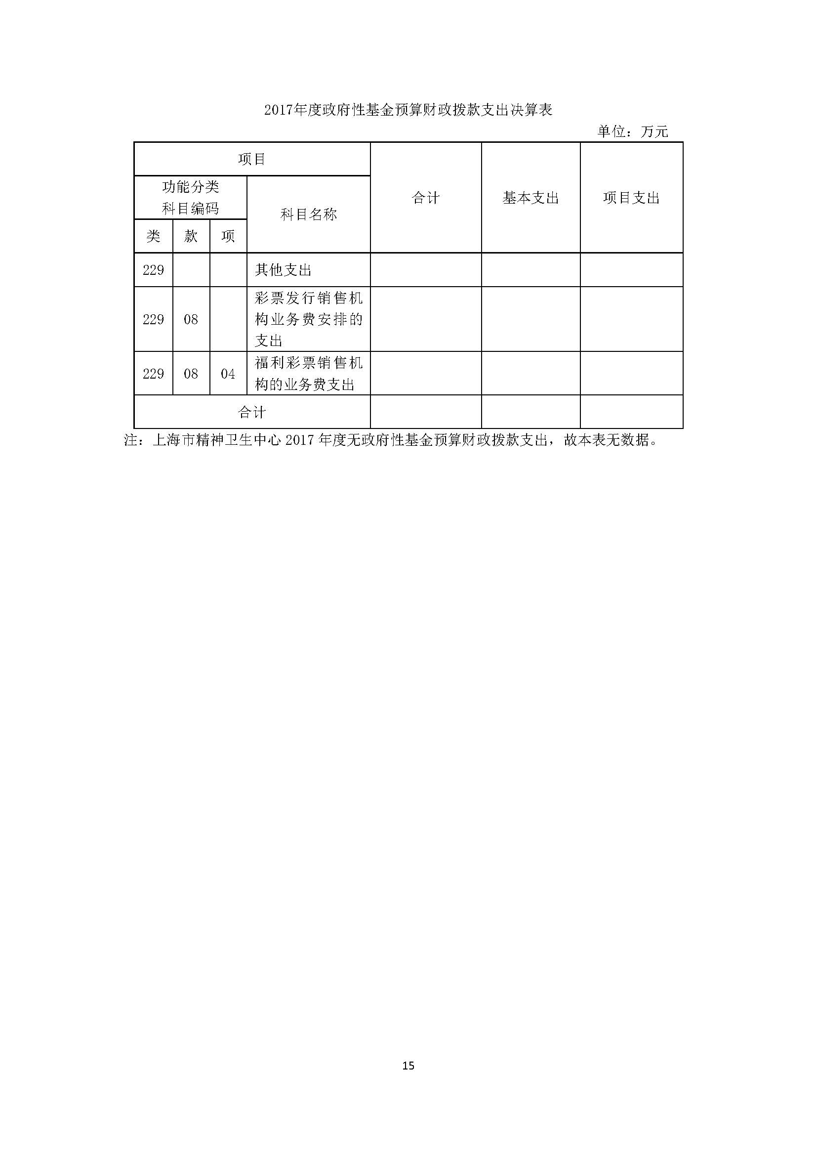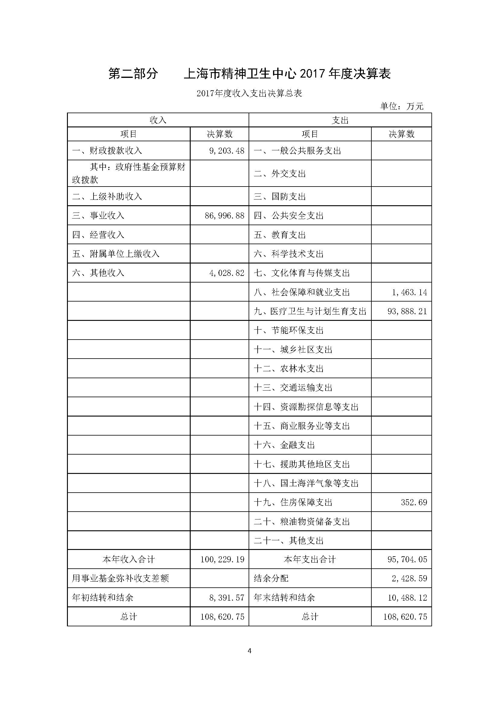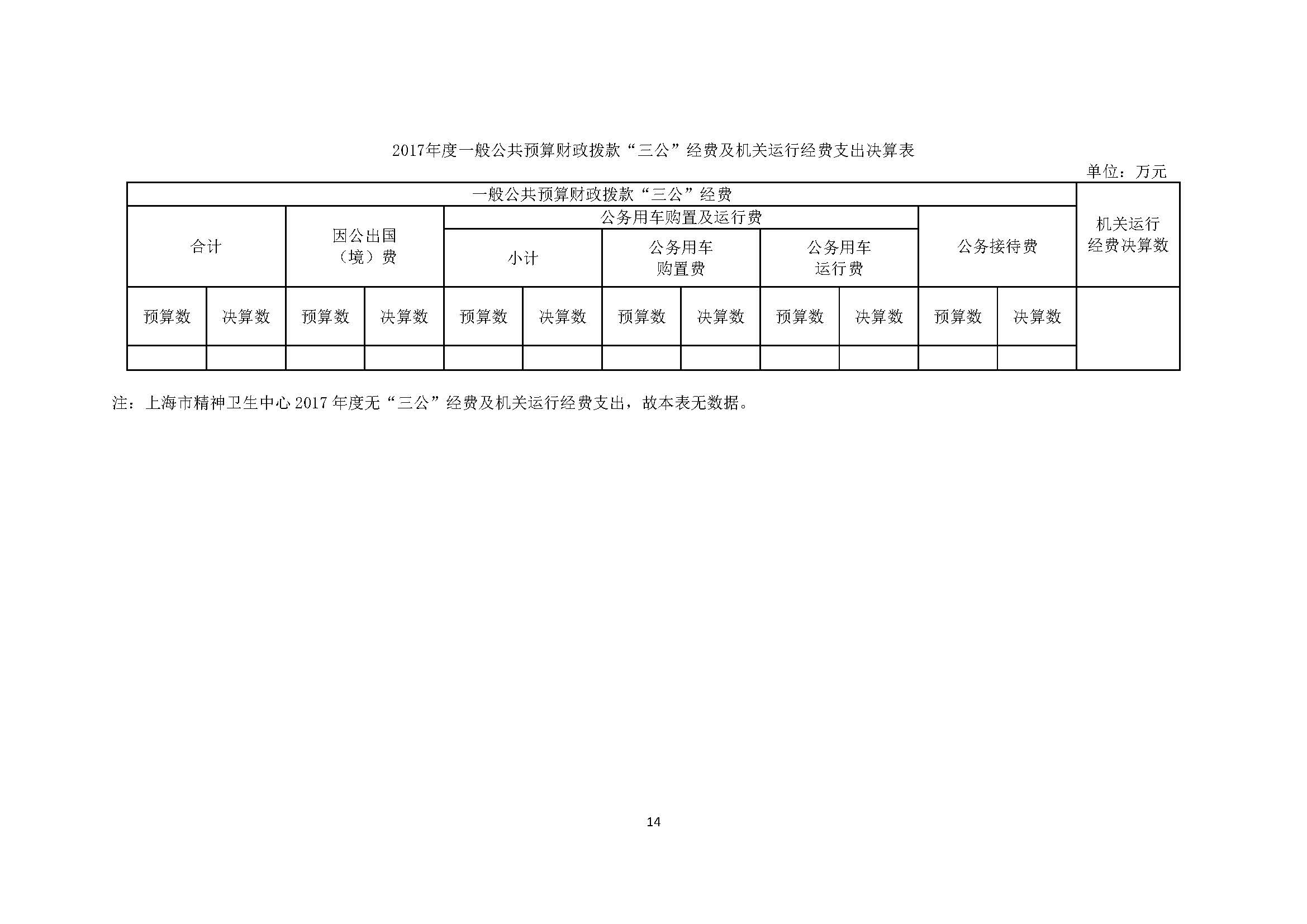 上海市精神卫生中心 2017年度决算