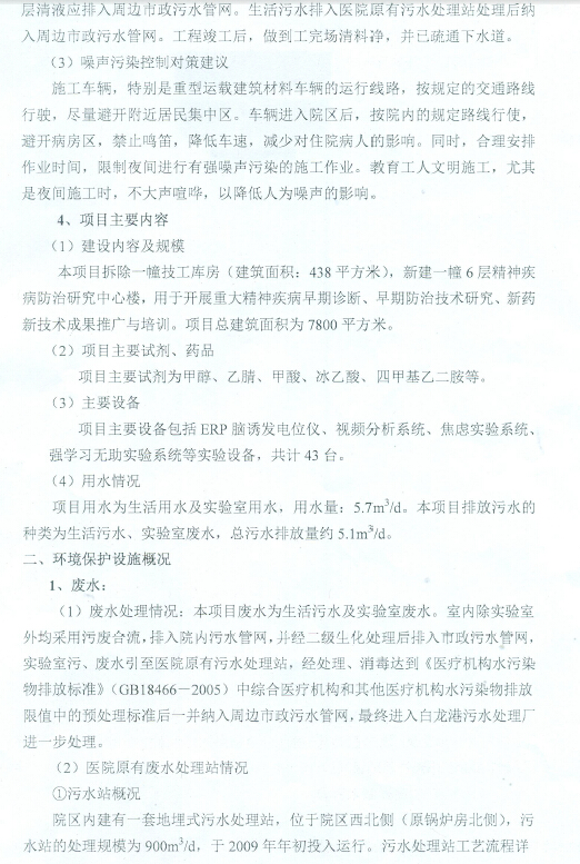 (4)建设内容及规模:拆除一幢技工库房,新建一幢6层精神疾病防治研究中心楼,用于开展重大精神疾病早期诊断、早期防治技术研究、新药新技术成果推广与培训。