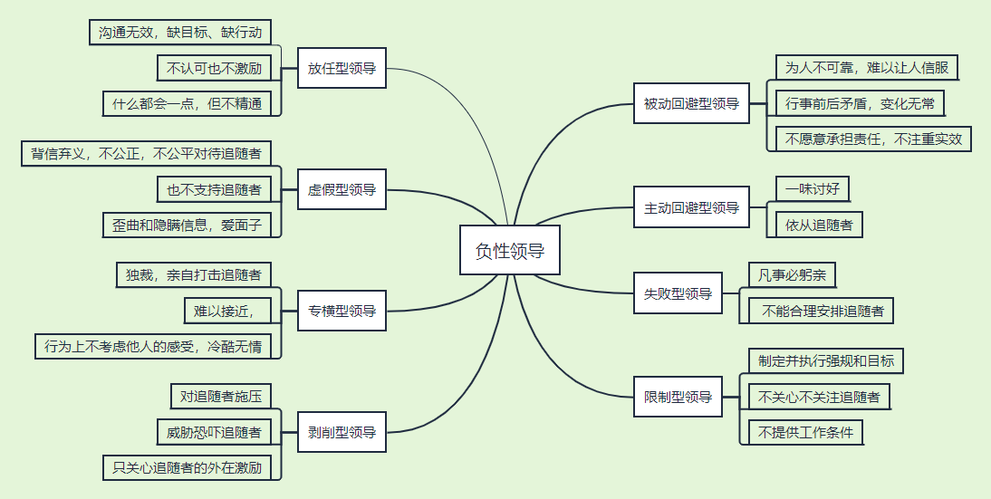 破坏型领导更是职场负性人际关系的制造者。我们可以通过概念图【5】对负性领导行为有较清晰的了解;而领导的个人品德水平越高,职场负性人际关系的发生率就越低。