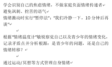 ——家庭之间的影响是双向的,要想解救青少年,前提学会从教养方式改变自己的态度、观念、情感和行为模式,从平常的互动在产生改变。